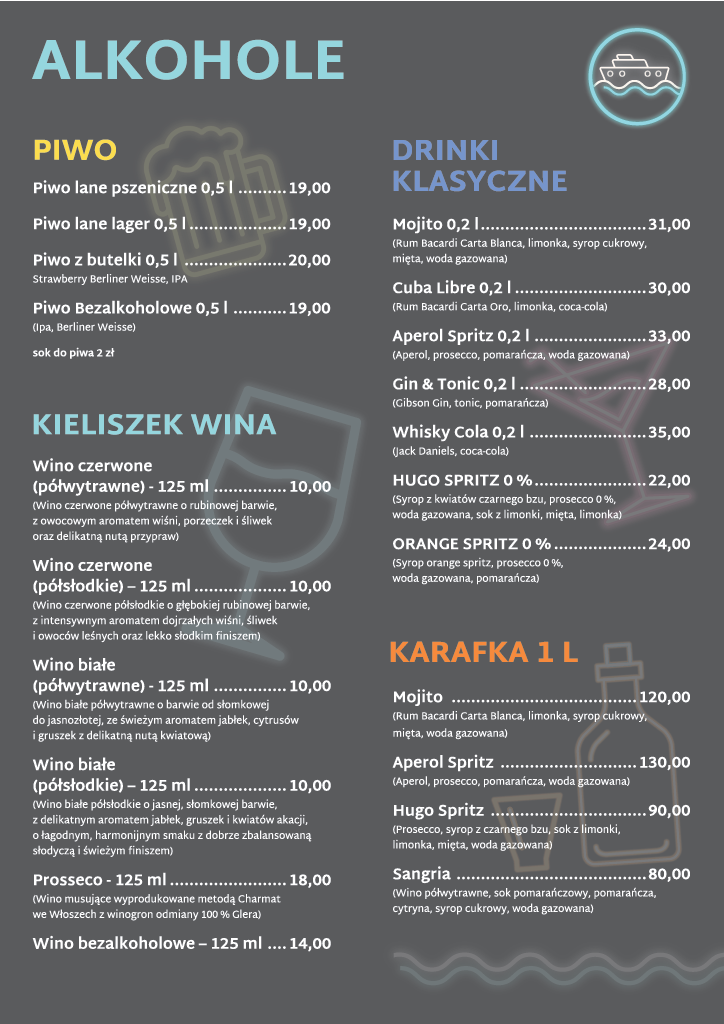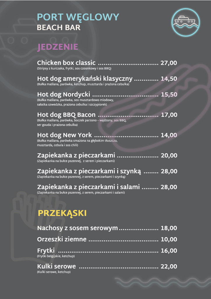 Nasz Beach Bar oferuje orzeźwiające drinki, napoje oraz koktajle, ale także smaczne przekąski, desery oraz dania główne. A wszystko to w bezpośrednim sąsiedztwie dawnego portu węglowego